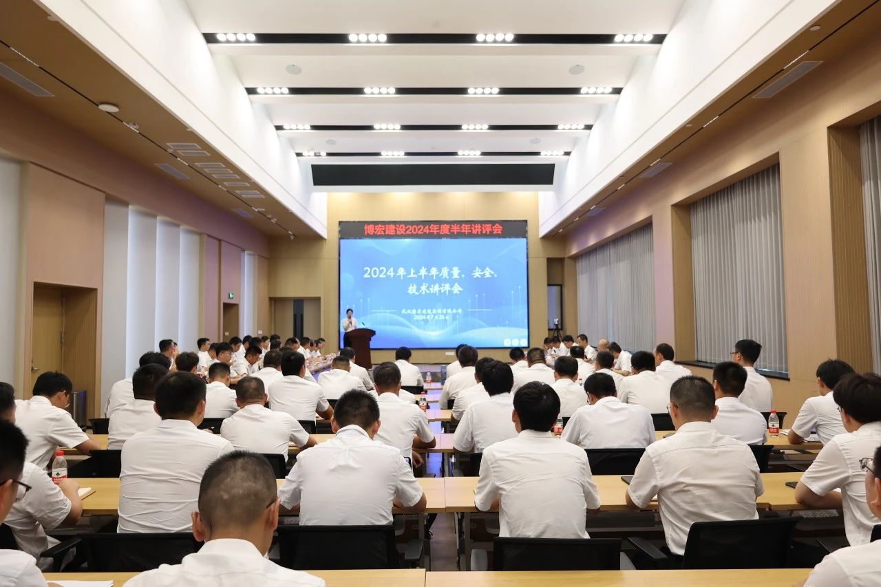 為切實提升項目管理水平,認真梳理項目現場優秀做法,找準短板問題,明確后續工作重點要求。7月26日下午,博宏建設集團2024年上半年質量、安全、技術講評會在公司31樓會議室召開。公司黨委班子、總助、部門負責人、項目經理、技術崗、質檢崗、安全崗、施工崗共計74人參加會議。會議由總工辦彭迎主持。